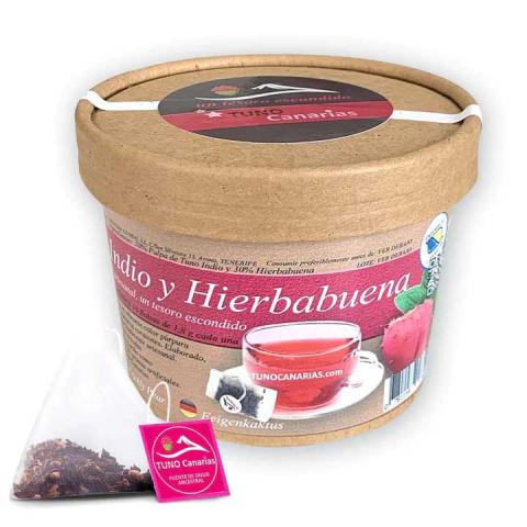 Comenzamos esta mezcla cosechando frutas de Higo Tuno Indio. Seguidamente lo mezclamos con una brillante y agradable base de hierbabuena ecológica cosechada en Tenerife. Elaborado con esmero y cosechado de forma totalmente artesanal se presentan en pirámides de calidad premium. Cada saquito contiene el concentrado equivalente a medio Higo Tuno Indio.
