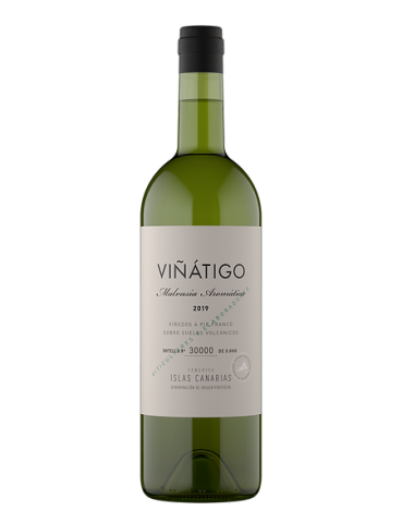 Nuestra Malvasía Aromática se encuentra en sus raíces originales, en pequeñas parcelas cerca del océano en el noroeste de Tenerife. El clima más suave de esta zona ayuda a desarrollar las uvas hasta la madurez completa y resalta los cautivantes aromas naturales de Malvasía. Deteniendo la fermentación antes de que llegue a su fin podemos hacer un vino muy bien equilibrado y seco.